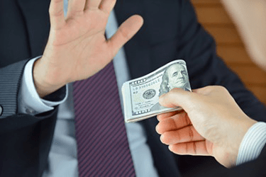 With a scruple that demonstrated his remarkable moral fiber, the businessman refused the bribe that would cause harm to his community.