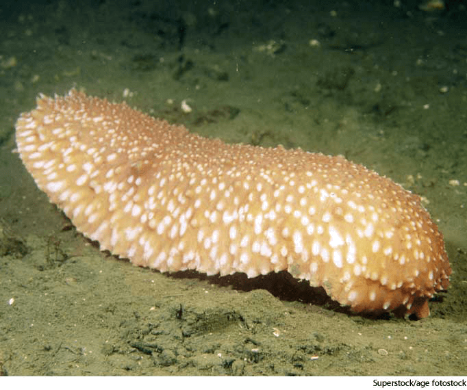 海参:任一种海参似胡瓜状的棘皮动物,长有灵活的肢体,嘴周围生满触角