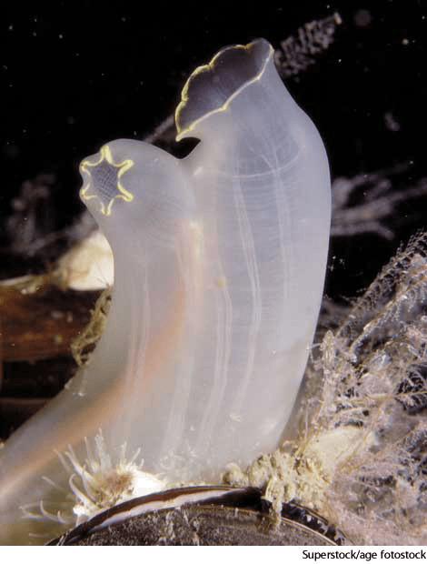 sea squirtn.(名词) sea squirttransparent sea squirtCiona intestinalis- Any of various sedentary marine animals of the class Ascidiacea, having a transparent sac-shaped body with two siphons. Also called ascidian 海鞘:任一种海鞘纲的海产坐生动物,生有透明且带有两支虹管的囊状躯体 也作 ascidian