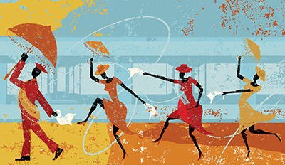 The second line parade strutted down the street following the Mardi Gras band while dancing and twirling their parasols.