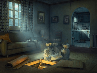 The bank robber planned to hide the bags of money under the secret door in the floor.