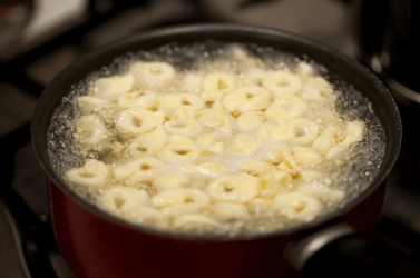 A seething pot of pasta.