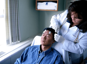 A patient receiving epilepsy monitoring to evaluate his seizures (seizer).