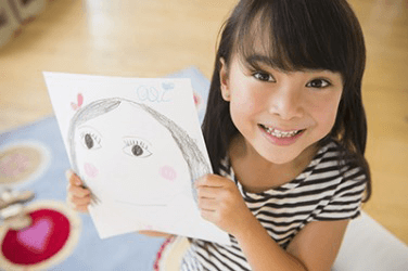 Ali's parents got her a box of crayons and a sketchpad for her birthday so she drew a self portrait for them to show her appreciation.