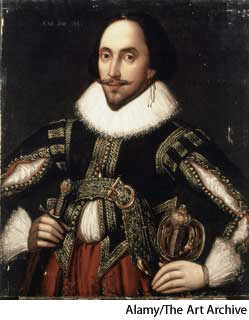 Shake·speare AHD[shākʹspîr] William (1564-1616) D.J.[ˈʃeɪkspɪə]K.K.[ˈʃekspɪr]NONE(无词性) William Shakespearepurported portrait byLouis Coblitz (1814-1863)- English playwright and poet whose body of works is considered the greatest in English literature. His plays, many of which were performed at the Globe Theatre in London, include historical works, such asRichard II, comedies, including Much Ado about Nothing and As You Like It, and tragedies, such as Hamlet, Othello, and King Lear. He also composed 154 sonnets. The earliest collected edition of his plays, the First Folio, contained 36 plays and was published posthumously (1623). 莎士比亚,威廉:(1564-1616) 英国戏剧家和诗人,他的作品被认为是英语文学作品中最伟大的戏剧,其中大多在伦敦的全球戏院演出过,包括历史作品,例如《理查德二世》 ;喜剧包括 《无事自扰》 和 《如愿》 ;悲剧包括 《哈姆雷特》 、 《奥赛罗》 和 《李尔王》 。他还作过154首十四行诗。他最早的戏剧集子,第一对开本,包含了36个戏剧,并在他死后出版(1623年)