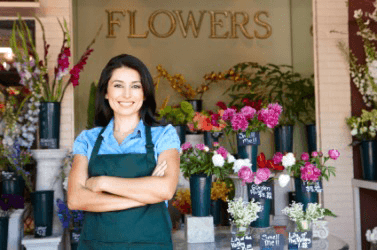This woman works in a flower shop.