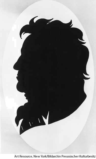 sil·hou·ette AHD[sĭl"o͞o-ĕtʹ] D.J.[ˌsɪluːˈet]K.K.[ˌsɪluˈɛt]n.(名词) silhouetteLudwig van Beethoven- A drawing consisting of the outline of something, especially a human profile, filled in with a solid color.黑色轮廓像:以同色绘出的某物的轮廓画,尤指人的侧面像