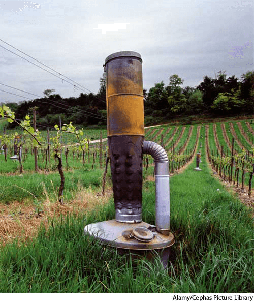 A receptacle in which oil or another smoky fuel is burned to protect an orchard from insects or frost.