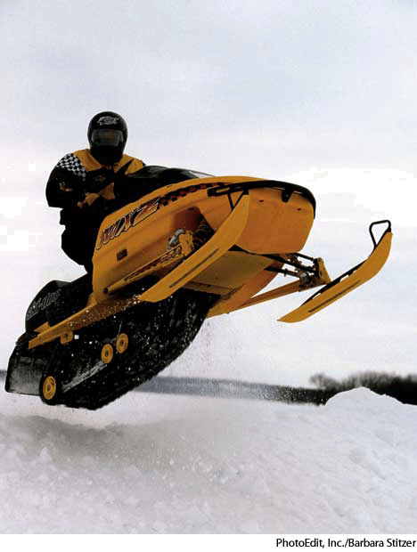 snow·mo·bile AHD[snōʹmō-bēl', -mə-] D.J.[ˈsnəʊməʊˌbiːl, -mə-]K.K.[ˈsnomoˌbil, -mə-]n.(名词) snowmobile- A small vehicle with skilike runners in front and tanklike treads, used for driving in or traveling on snow. Also called skimobile 雪地机动车:前端有类似滑行装置以及类似坦克胎面的小车,用来在雪地上驾驶或旅行 也作 skimobile