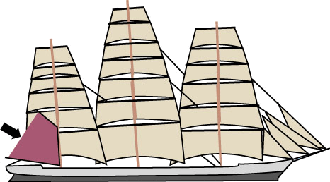 后纵帆:帆船上最靠近底部船桅的斜木头的帆