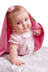 A baby looks out from beneath a blanket.