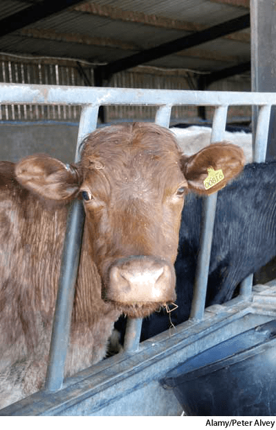 - A framework consisting usually of two vertical bars, used to secure cattle in a stall.栓牛枷:通常有两个直立木棍的枷子,用来拴牛棚中的牛