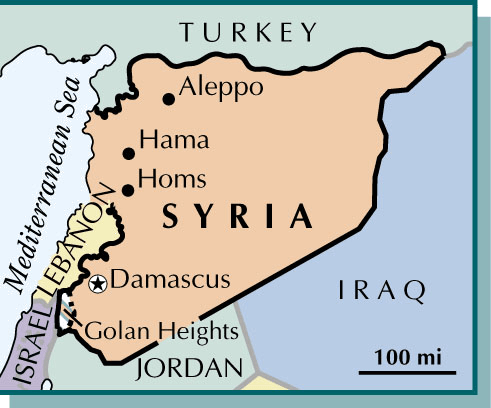 Sy·ri·a AHD[sîrʹē-ə] abbr.缩写 Syr.D.J.[ˈsɪəriːə]K.K.[ˈsɪriə]NONE(无词性) - A country of southwest Asia on the eastern Mediterranean coast. Conquered by various powers in ancient times, it was a province of the Ottoman Empire (1516-1918) and became a French territory in 1920. Syria officially gained its independence in 1944. Damascus is the capital and the largest city. Population, 9,052,628.叙利亚:亚洲西南部一国家,位于地中海东海岸。古代曾由不同的势力征服,曾为奥斯曼帝国(1516-1918年)的一省,于1920年成为法国辖地。1944年叙利亚正式获得独立。大马士革为其首都及最大城市。人口9,052,628