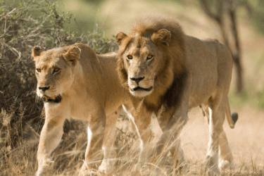 Tan is the color of the coat of these lions.