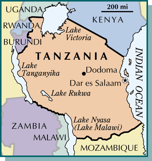 Tan·za·ni·a AHD[tăn'zə-nēʹə] abbr.缩写 Tanz.D.J.[ˌtænzəˈniːə]K.K.[ˌtænzəˈniə]NONE(无词性) - A country of east-central Africa on the Indian Ocean. Inhabited since prehistoric times, most of the region became a German protectorate in 1891 and passed to the British in 1920 as Tanganyika. Zanzibar, a narrow strip along the coast, was a British protectorate after 1890. Tanganyika achieved independence in 1961 and joined with Zanzibar in 1964 to form Tanzania. Dar es Salaam is the de facto capital and the largest city; Dodoma is the official capital. Population, 17,557,000.坦桑尼亚:非洲中东部一国家,位于印度洋沿岸。自史前时代就有人类居住,在1891年该地区大部分成为德国的保护国,在1920年又作为坦噶尼喀转由英国人控制。桑给巴尔是印度洋沿岸的一个狭长带状区域,在1890年后它成为一个英国的保护国。坦噶尼喀在1961年获得独立,在1964年与桑给巴尔合并形成坦桑尼亚。达累斯萨拉姆为事实上首都和最大的城市;多多马为正式首都。人口17,557,000