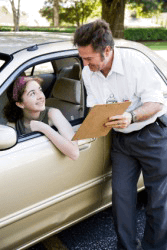 A girl about to take her driving test.