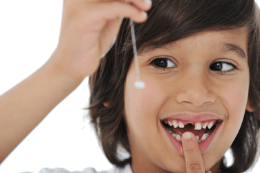 This little boy has lost a tooth.
