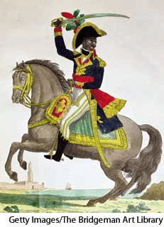 Tous·saint L'Ou·ver·ture AHD[to͞o-să’“ lo͞o-vĕr-türʹ] François Dominique (1743?-1803) D.J.[tuːˈsæŋ luːverˈtjuːr]K.K.[tuˈsæŋ luvɛrˈtjur]NONE(无词性) François Toussaint L'Ouverture19th-century engraving- Haitian revolutionary who with the help of the French led a force that expelled the British and Spanish from Haiti (1798).杜桑,弗朗索瓦·多米尼奎:(1743?-1803) 海地革命家,在法国的帮助下,他领导一支军队于1798年将英国人和西班牙人逐出海地