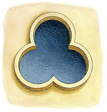 - An ornament, a symbol, or an architectural form having the appearance of a trifoliate leaf.三叶形:有车轴草外形的装饰、符号或建筑形式