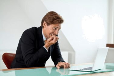 A man faces his computer task with trepidation.