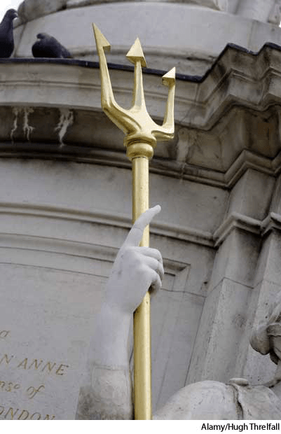 释义 tri·dent AHD[trīdʹnt] D.J.[ˈtraɪdnt]K.K.[ˈtraɪdņt]n.(名词)tridentdetail of a statue of Britannia outside St. Paul's CathedralLondon, England