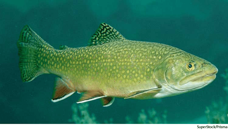 1. Any of various freshwater or anadromous food and game fishes of the family Salmonidae, especially of the generaSalmo and Salvelinus, usually having a streamlined, speckled body with small scales. 鳟:鲑鱼科的各种淡水或溯河性食用及捕钓鱼,尤指鲑鱼 属和 红点鲑 属,通常身体呈流线形,有斑纹,鳞片等