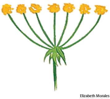 um·bel AHD[ŭmʹbəl] D.J.[ˈʌmbəl]K.K.[ˈʌmbəl]n.(名词) umbel- A flat-topped or rounded flower cluster in which the individual flower stalks arise from about the same point, as in the geranium, milkweed, onion, and chive.伞形花序:单个花茎大致上总从同一个地方长出的,顶端扁平或圆的花序,如天笠葵、乳草、洋葱和细香葱