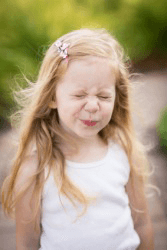 A little girl in an undershirt.