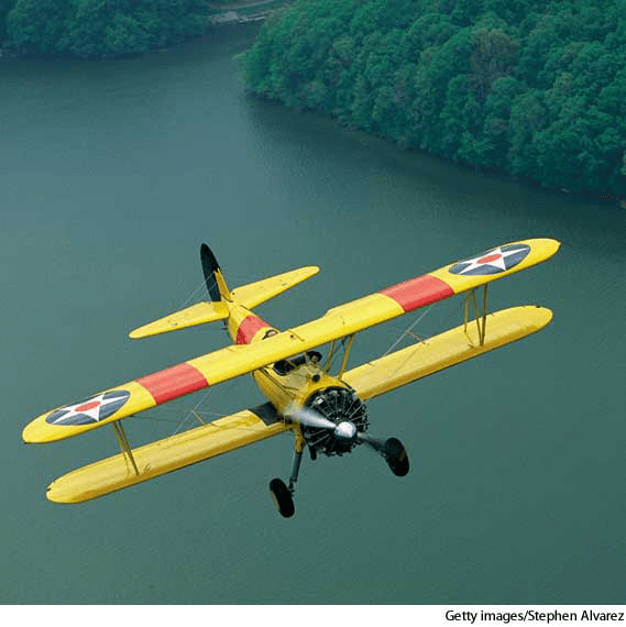 bi·plane AHD[bīʹplān'] D.J.[ˈbaɪˌpleɪn]K.K.[ˈbaɪˌplen]n.(名词) biplaneStearman Model 75 biplane of the 1930s and 1940s- An airplane having two pairs of wings fixed at different levels, especially one above and one below the fuselage.双翼飞机:有两片机翼安在不同水平线的飞机,尤指一在机身上方,一在机身下方