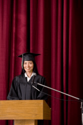 The valedictorian speaks at her graduation.