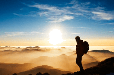 A hiker enjoys a beautiful view.