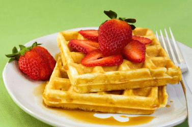 Waffles with strawberries.