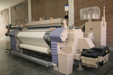 Weaving looms in a textile mill.