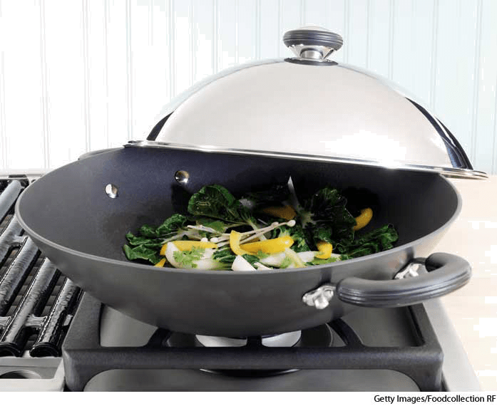 镬:一种圆底金属锅,特别在亚洲烹饪中炸或蒸时使用