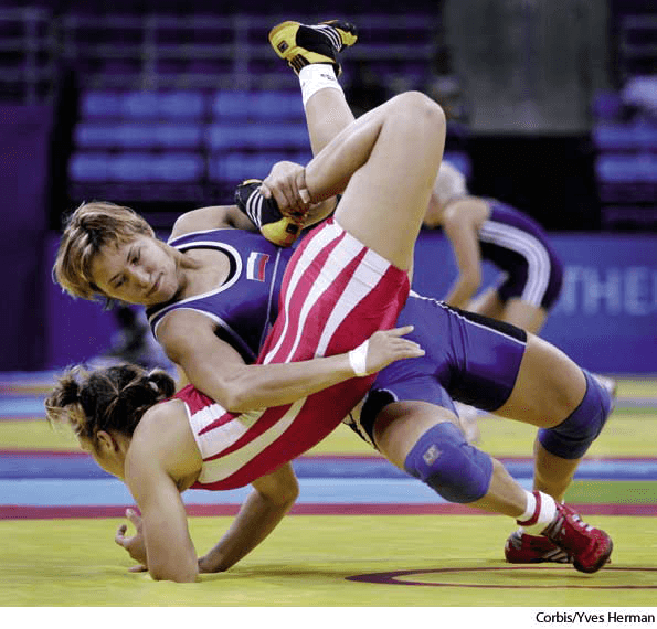 wres·tling AHD[rĕsʹlĭng] D.J.[ˈreslɪŋ]K.K.[ˈrɛslɪŋ]n.Sports(名词)【体育运动】 wrestlingGouzel Maniourova of Russia (blue) and Marina Gastl of Austria (red) at the 2004 Olympic GamesAthens, Greece- A sport in which two competitors attempt to throw or immobilize each other by grappling.摔跤:一项体育运动,其中两名对手通过格斗试图把对方扔出去或摔倒对方