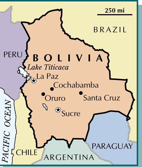 Bo·liv·i·a AHD[bə-lĭvʹē-ə, bō-] abbr.缩写 Bol.D.J.[bəˈlɪviːə, bəʊ-]K.K.[bəˈlɪviə, bo-]NONE(无词性) - A landlocked country of western South America. It was named after Simón Bolívar who helped win its independence from Spain in 1825. Sucre is the legal capital and the seat of the judiciary. La Paz is the administrative center and the largest city. Population, 6,429,226.玻利维亚:南美洲西部的内陆国家,以在1825年协助其从西班牙独立出来的西蒙·玻利维亚的名字命名。苏克雷是其法定首都和司法机关所在地,拉巴斯兹是其行政管理中心和最大城市。人口6,429,226