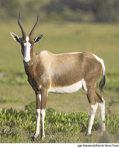 bon·te·bok AHD[bŏnʹtə-bŏk'] D.J.[ˈbɒntəˌbɒk]K.K.[ˈbɑntəˌbɑk]n.(名词) bontebokDamaliscus pygargus subsp. pygargus- A rare South African antelope(Damaliscus dorcas or D. pygargus) having a dark reddish coat, a white rump, and a white mark on the face. 南非羚羊:南非的一种稀有羚羊(南非白纹大羚羊 或 白腿牛羚) ,躯干呈深红色,臀部为白色,脸上有白色标记
