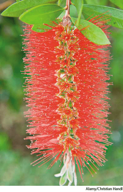 bot·tle·brush AHD[bŏtʹl-brŭsh'] D.J.[ˈbɒtlˌbrʌʃ]K.K.[ˈbɑtļˌbrʌʃ]n.(名词) bottlebrush- Any of various Australian shrubs or trees of the generaCallistemon and Melaleuca, having densely flowered, cylindrical spikes with numerous, long, protruding stamens that suggest a brush used to clean bottles. 红千层属植物:红千层属 和 白千层 属各种澳大利亚灌木或树木,具有稠密的花状圆柱形尖刺,上带大量长而突出的雄蕊,令人想起清洁瓶子的刷子