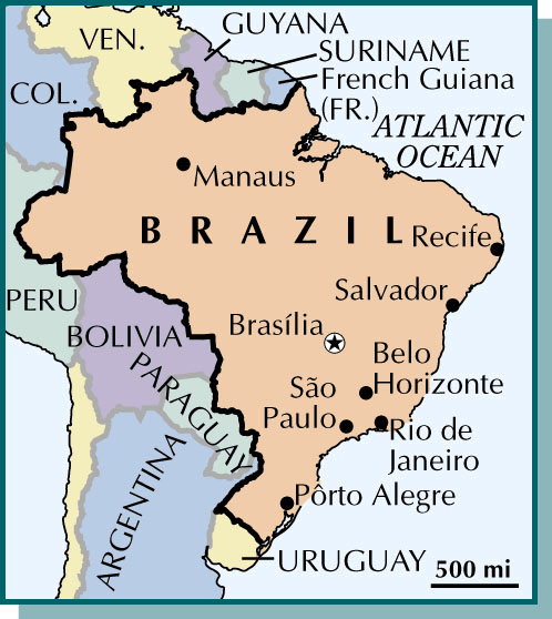 Bra·zil AHD[brə-zĭlʹ] abbr.缩写 Braz.D.J.[brəˈzɪl]K.K.[brəˈzɪl]NONE(无词性) - A country of eastern South America. The largest country in the continent, it was ruled by Portugal from 1500 to 1822 and was an empire until 1889, when a republic was established. Brasília has been the capital since 1960; São Paulo is the largest city. Population, 119,002,706.巴西:南美洲东部国家。是该大陆上最大的国家,于1500至1822年间被葡萄牙统治,后在1889年成为一个王国,直到共和国的建立。自1960年起巴西利亚是其首都;圣保罗为最大城市。人口119,002,706