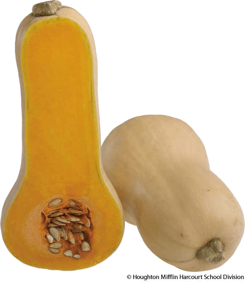 shaped somewhat like a bell and having a smooth, tan rind and edible yellowish to orange flesh.