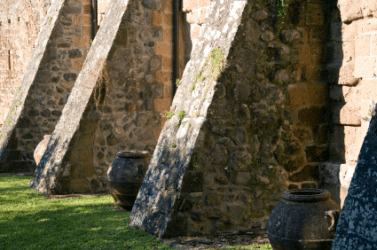 Buttresses supporting an ancient building.