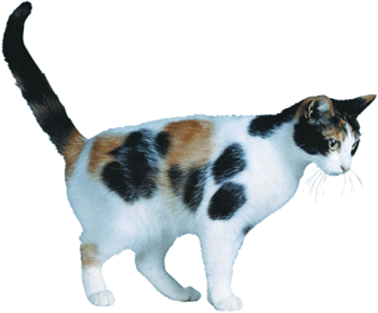 - An animal, such as a cat, having a coat that is mottled in tones of white with red and black.带斑纹动物:一种有白色夹杂红色和黑色斑纹皮毛的动物,如猫