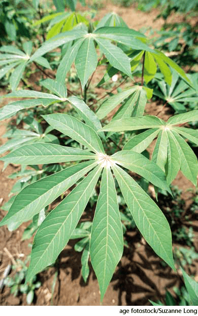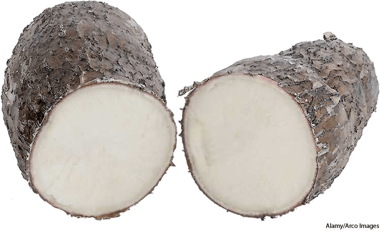 - The root of this plant, eaten as a staple food in the tropics only after leaching and drying to remove cyanide. Cassava starch is also the source of tapioca. Also called manioc 木薯根:该植物的根,经沥滤和晒干去除氰化物后,作为一种主要食物在热带地区食用。木薯粉也是食用淀粉的来源 也作 manioc