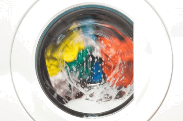 A washing machine causes clothes to become clean.
