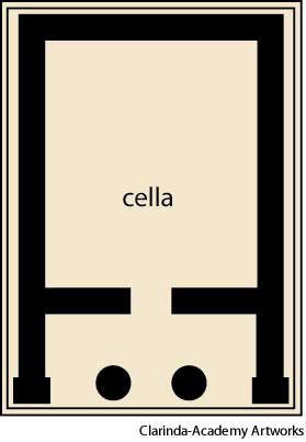 The inner room or sanctuary of an ancient Greek or Roman temple.