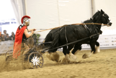 A Roman charioteer driving his chariot in a race.