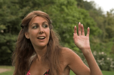 A woman waving 'ciao'.