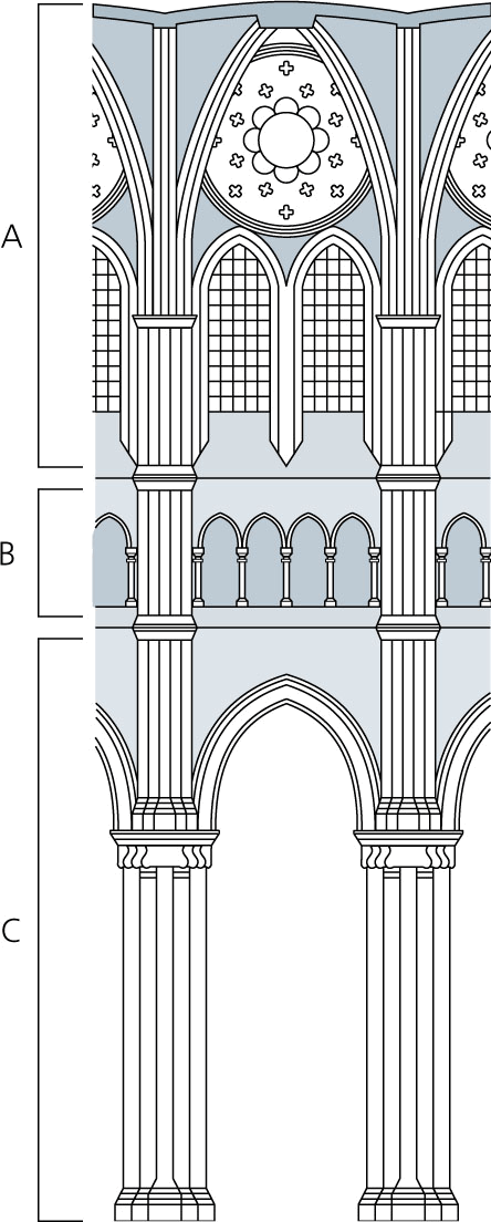 clerestory 也作 clear·sto·ry AHD[klîrʹstôr'ē, -stōr'ē] D.J.[ˈklɪəˌstɔːriː, -ˌstəʊriː]K.K.[ˈklɪrˌstɔri, -ˌstori]n.(名词)pl. clere.sto.ries 【复数】 High Gothic style cathedral nave wallA. clerestoryB. triforiumC. arcadePrecision Graphics- The upper part of the nave, transepts, and choir of a church, containing windows.纵向天窗,顶楼:教堂正厅、袖廊及唱诗班席位的上部,包括窗户