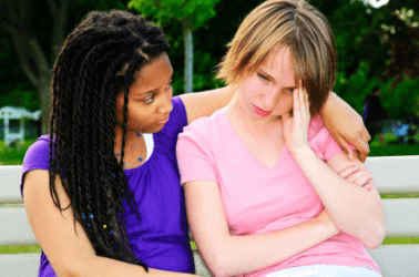 A girl showing compassion for her friend.
