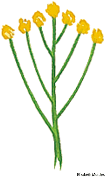 1. A usually flat-topped flower cluster in which the individual flower stalks grow upward from various points of the main stem to approximately the same height.伞房花序:一种通常平顶的花序,指从主茎各点上长出的单个花柄都达到几乎相同的高度